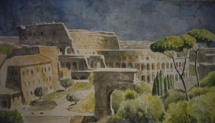 Vista del Coliseo desde Palatino Acuarela sobre