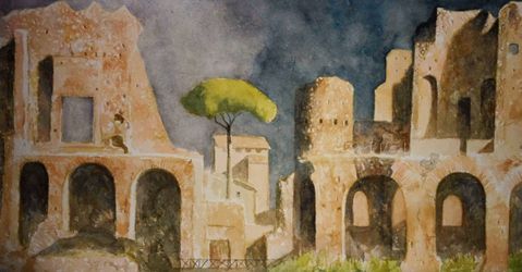 Casa de las Vestales - Palatino Acuarela sobre